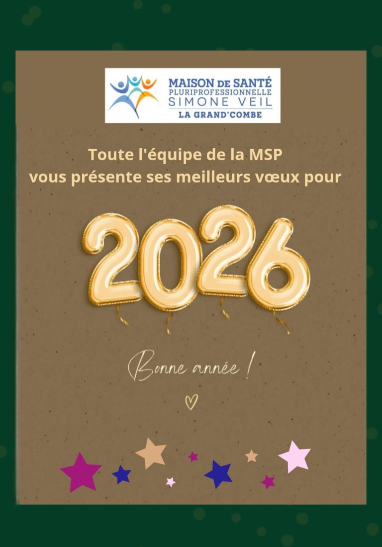 L’équipe de la MSP vous souhaite une année pleine de santé, d’énergie et de petits bonheurs au quotidien 🫂