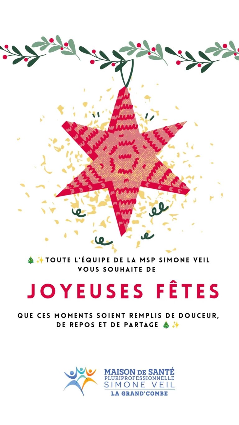 🎄✨ Toute l’équipe de la MSP Simone Veil vous souhaite de belles fêtes de fin d’année En cette période de fin d’année,